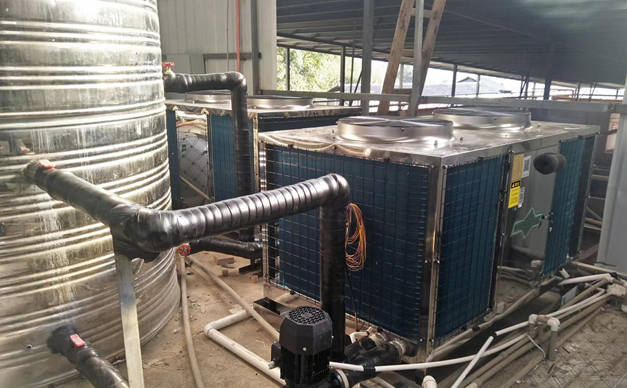 贵州省遵义市余庆县屠宰场高温热水项目采用RB-36KXH(10匹) 碧涞空气源高温热泵热水机组2台,可持续产85℃高温热水,满足屠宰加工流水线高温热水需求。机组回收利用屠宰过程中产生的大量废弃低温热水的热量,应用到高温热水的制取,减少热量损失,更加节能。