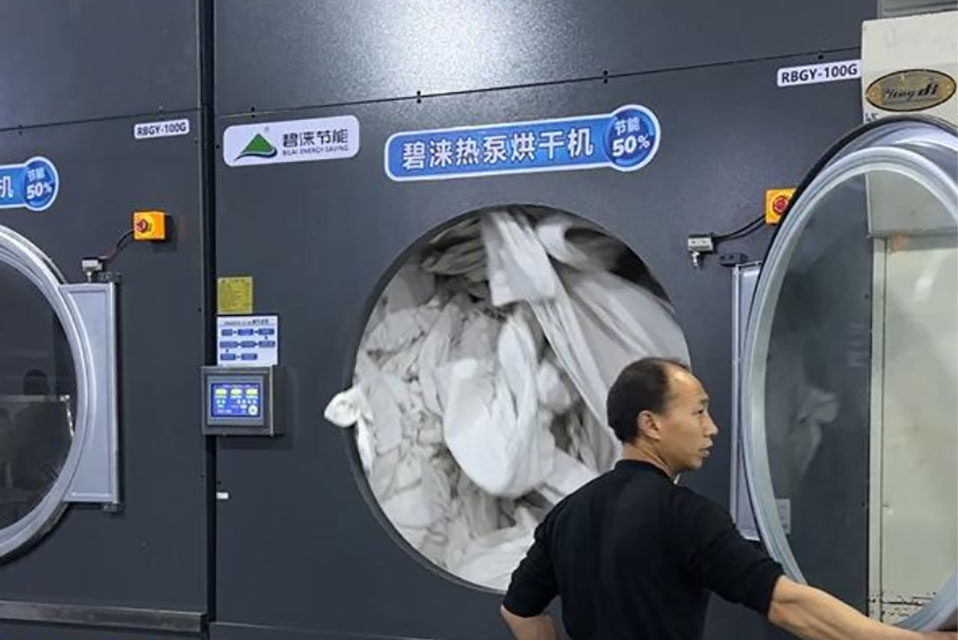 深圳龙华金牌洗涤厂原来采用的液化气和电进行烘干,烘干100KG 布草费用约 45元,现使用碧涞热