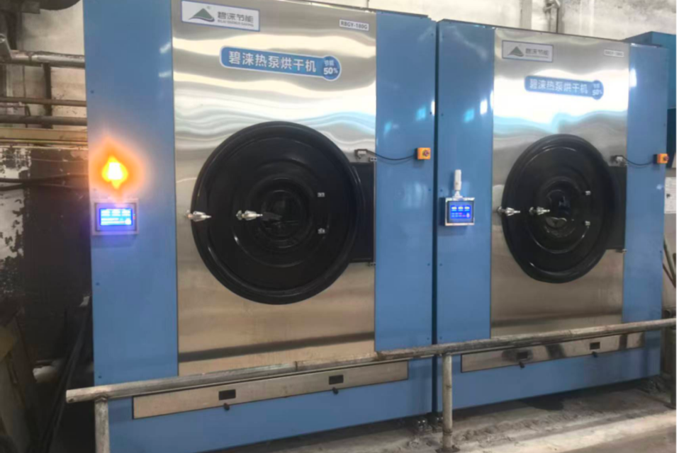 博森洗水厂是工业园自有的洗水厂,原来使用蒸汽烘干机 10台,现改换成 10台碧涞热泵烘干机并充分利用谷电后,每月节省了6.3万元。洗水厂同时还安装了碧涞热泵热水机,生产 55℃热水每吨仅需10度电,比原来蒸汽产热水可节省8元/吨。