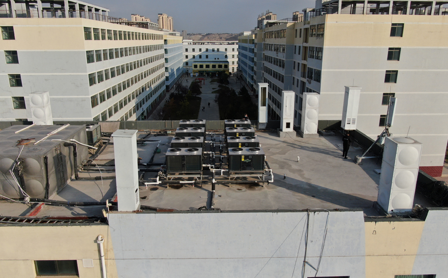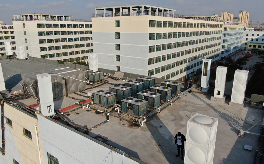 甘肃省兰州财经大学空气能热水工程采用碧涞RB-51K(15匹)空气源热泵热水机10台,满足该项目每天200吨热水需求,目前运行效果好,受到学校管理方与学生的一致好评和赞誉。