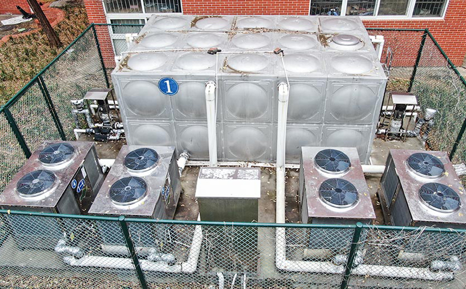 山东交通学院大学空气能热水工程项目采用碧涞RB-51K(15匹)空气源热泵热水机6台,满足该大学约100吨每天的热水需求,机组运行至今安全稳定、节能低耗,得到校方领导及师生的一致认可。