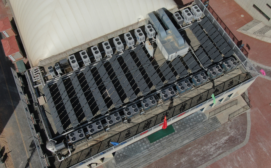 甘肃省张掖市临泽游泳馆太阳能+热泵泳池恒温项目案例