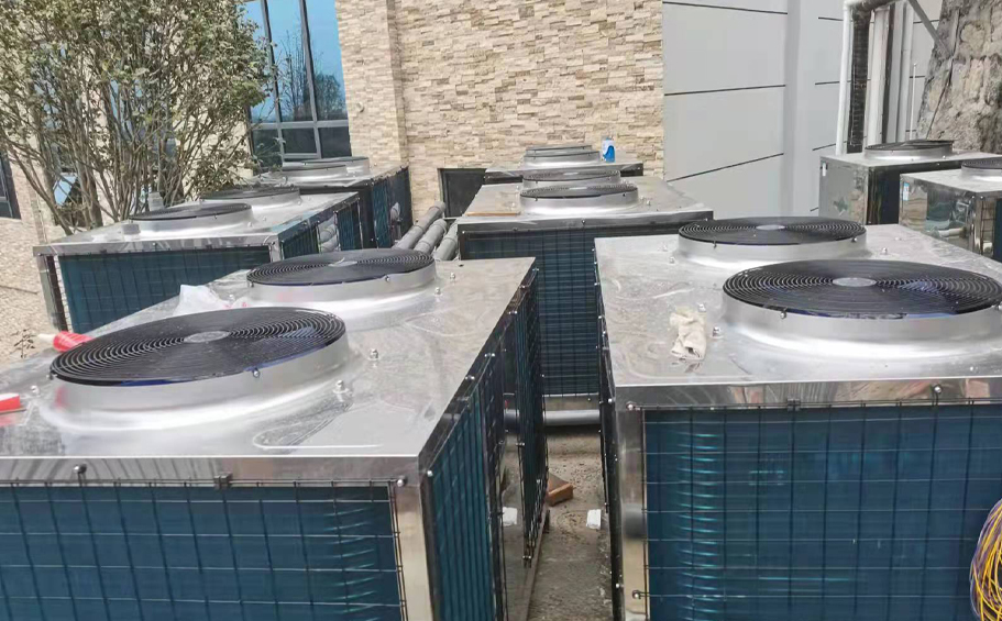 湖南福井龙湾温泉酒店恒温工程的酒店室内温泉泡池、室外温泉泳池、木屋私汤等采用碧涞空气能泳池专用恒温热泵RB-102KX(30P) 6台、RB-51KX(15P) 12台、RB-36KX(10P) 9台、RB-18KX(5P) 2台。采用碧涞空气能直热+循环热水机RB-36K(10P) 4台,满足酒店客房每天生活热水40吨的需求,目前运行效果好,受到投资方与住户的一致好评和赞誉。