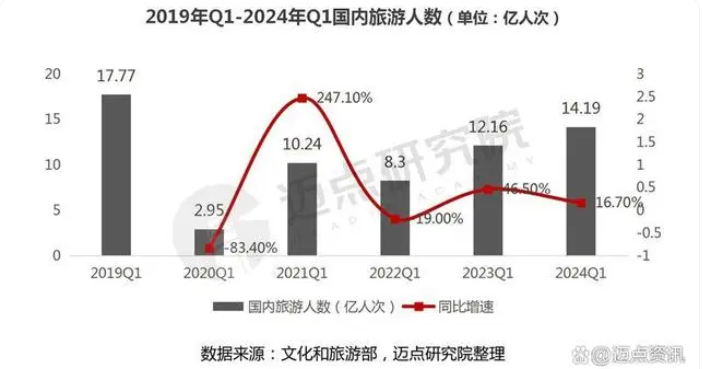 在探索世界的美好旅程中,我们总是按捺不住那颗向往远方的心。近年来,随着文旅单位的不断创新,美食、美景和贴心服务构成了一幅幅诱人的画卷,让旅游行业焕发出新的活力。2024年一季度,国内旅游总人次14.19亿,同比增长16.7%;国内旅游收入1.52万亿元,同比增长17.0%,不仅彰显了旅游业的繁荣,也带动了餐饮、交通和住宿等相关行业的共同发展。