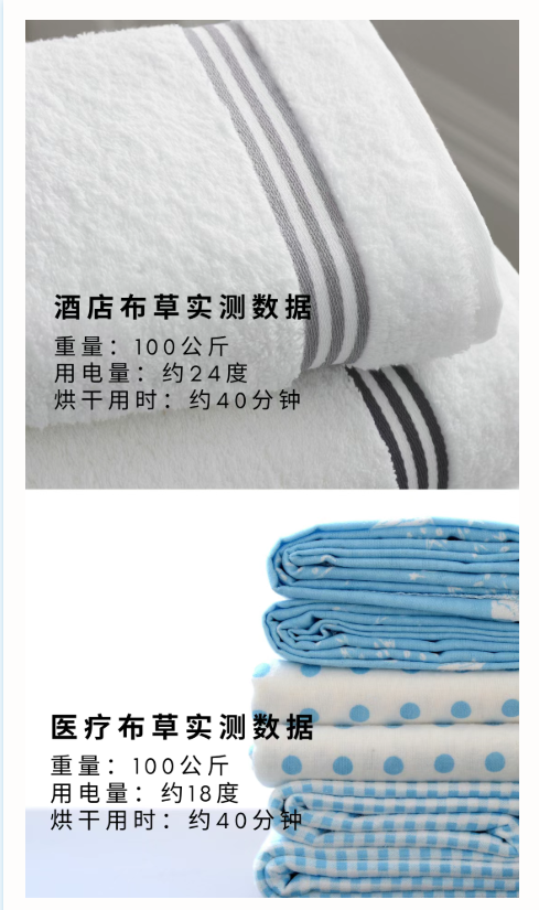 以上就是6类布草的烘干耗电量实测数据,老板们可以结合自身所在地区的电价,同时考虑有无峰谷电,计算出目前烘干成本还可以通过热泵烘干机节省多少。