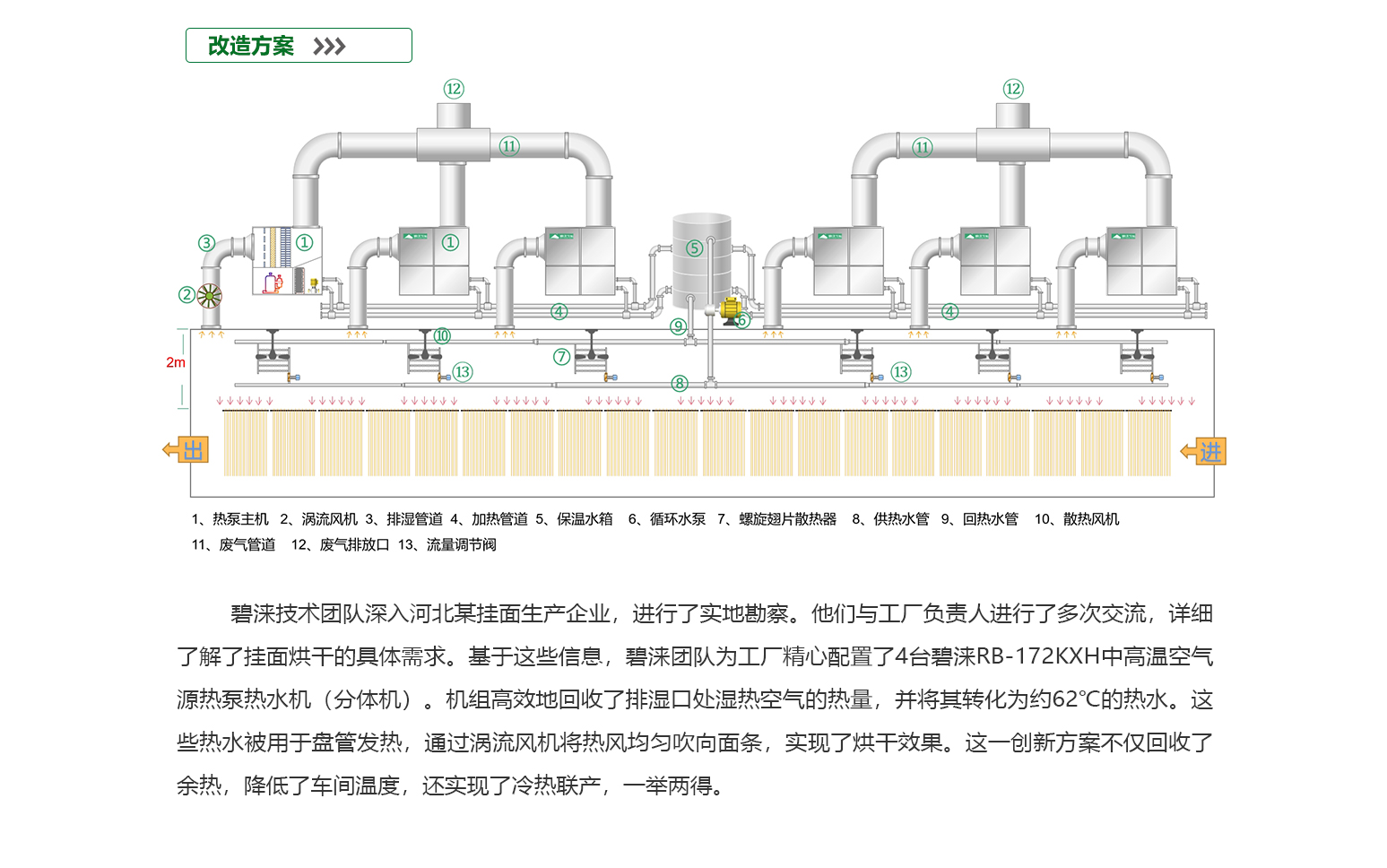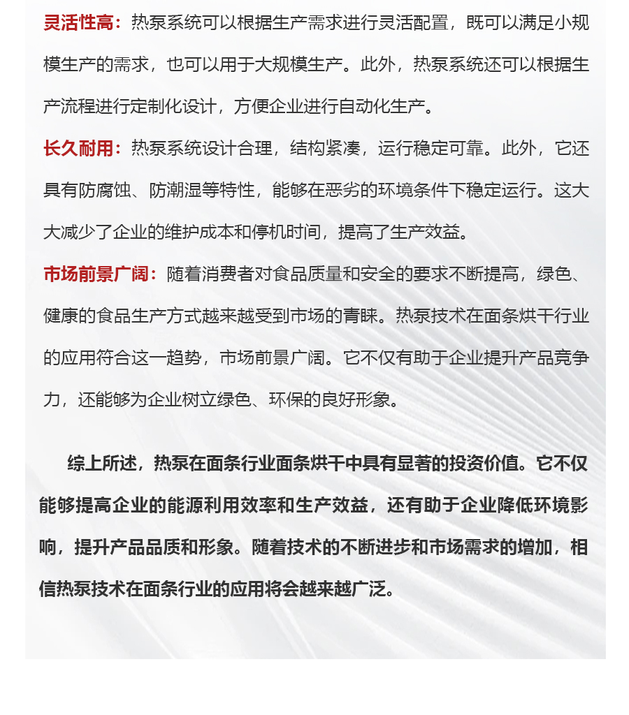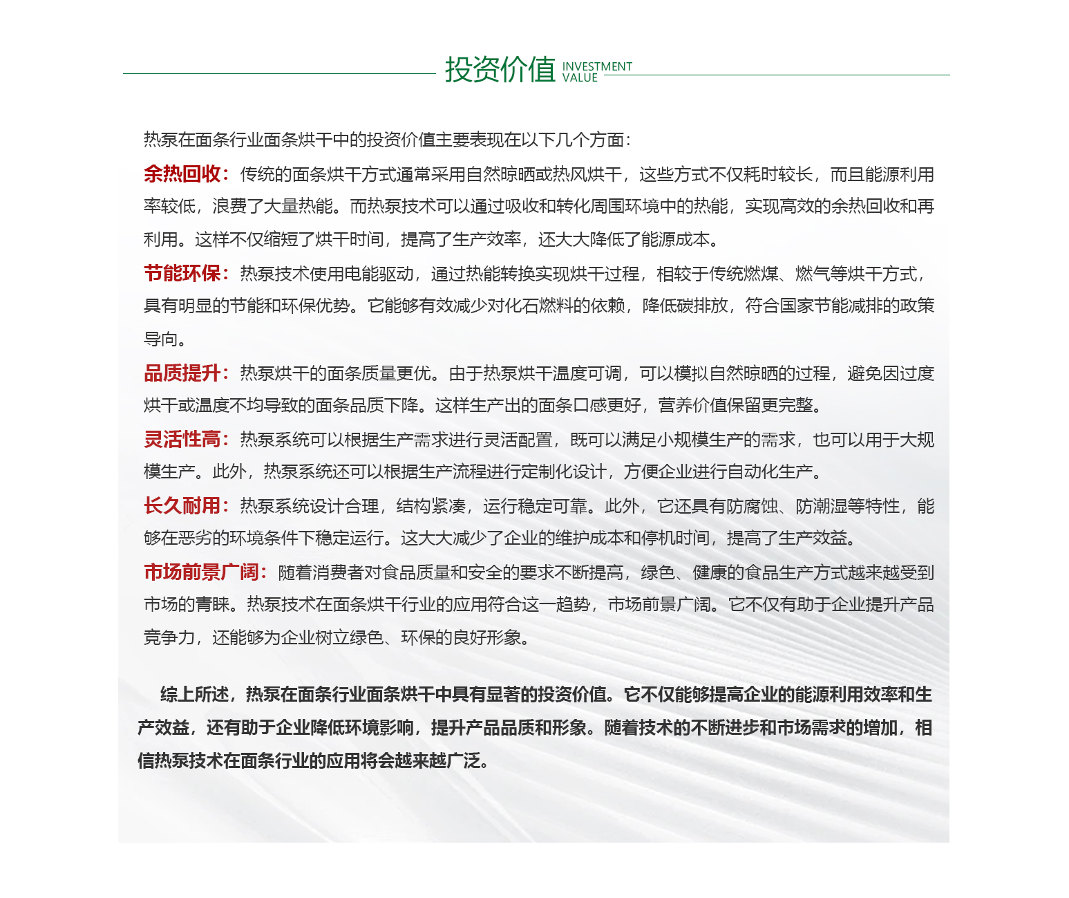 - 面条行业在生产过程中需要大量的热能,通常通过燃烧燃料或使用电热设备来产生。然而,在目前的用热状况下,废热的浪费现象普遍存在。这是因为传统的面条生产线在处理废热时缺乏有效的回收和利用措施,导致大量的热量被浪费。这种废热浪费不仅增加了能源成本,还对环境造成了负面影响。为了解决这个问题,面条行业需要采取措施来提高设备的能效和废热的利用效率。这可以通过采用先进的生产工艺和技术,如热回收系统和废热利用技术,来实现能源的节约和环境的保护。