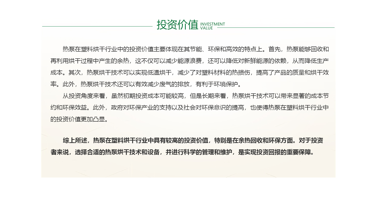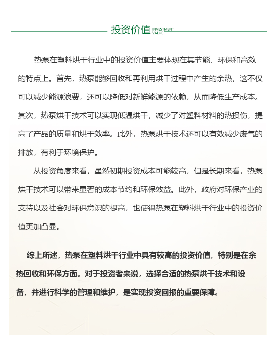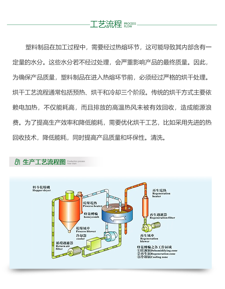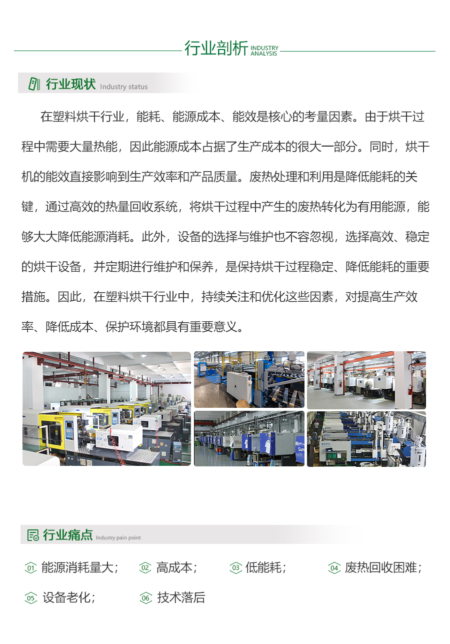 - 在塑料烘干行业,能耗、能源成本、能效是核心的考量因素。由于烘干过程中需要大量热能,因此能源成本占据了生产成本的很大一部分。同时,烘干机的能效直接影响到生产效率和产品质量。废热处理和利用是降低能耗的关键,通过高效的热量回收系统,将烘干过程中产生的废热转化为有用能源,能够大大降低能源消耗。此外,设备的选择与维护也不容忽视,选择高效、稳定的烘干设备,并定期进行维护和保养,是保持烘干过程稳定、降低能耗的重要措施。因此,在塑料烘干行业中,持续关注和优化这些因素,对提高生产效率、降低成本、保护环境都具有重要意义。