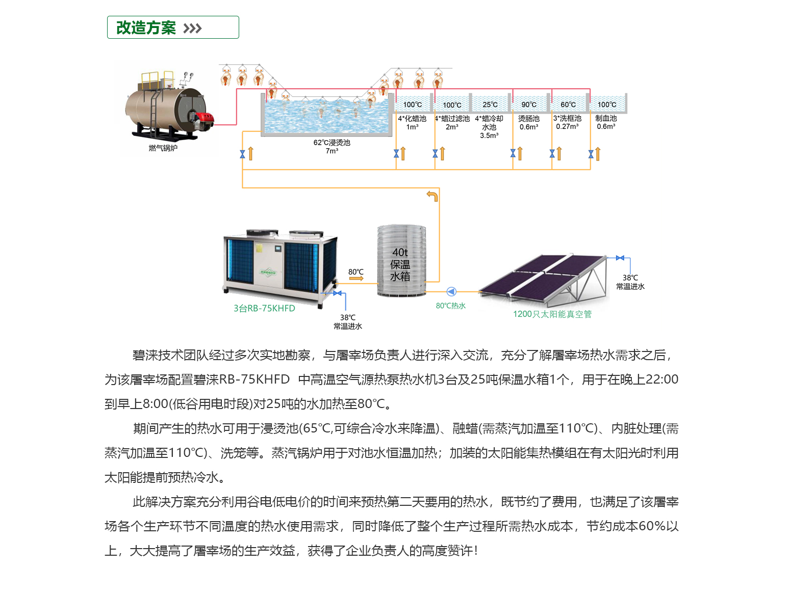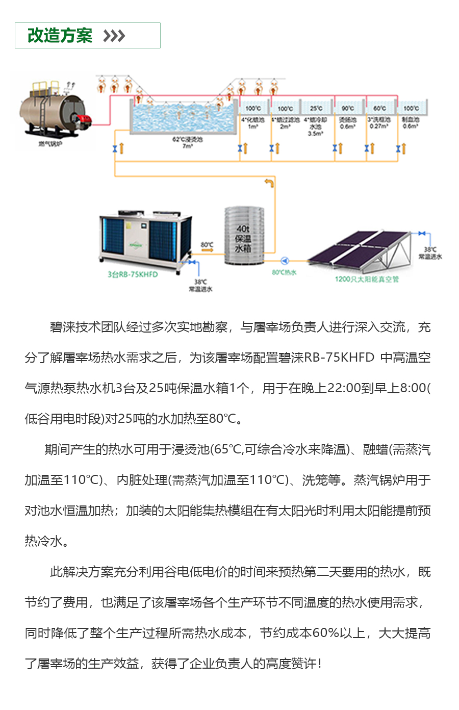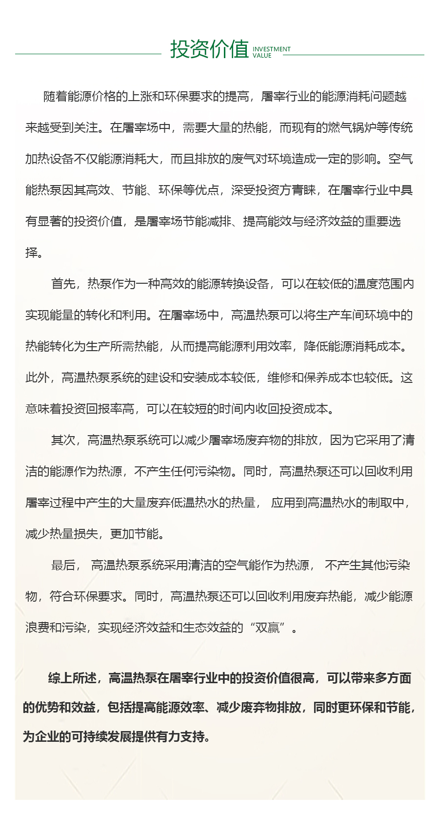 - 屠宰行业是一个高度依赖热能的高能耗行业。目前,该行业的主要用热来源是化石燃料和电能,其中化石燃料的使用对环境造成了严重的影响。此外,屠宰行业的废热利用效率低下,大量的余热被浪费掉。这不仅浪费了能源资源,还增加了企业的能源消耗成本。从环保角度来看,屠宰行业的废水排放量巨大,而且废水中的有机物质和细菌等有害物质的含量很高,这些物质的排放不仅对环境造成了严重的影响,而且也威胁到了人类的健康和生态的平衡。