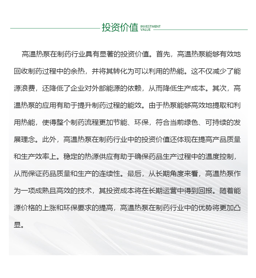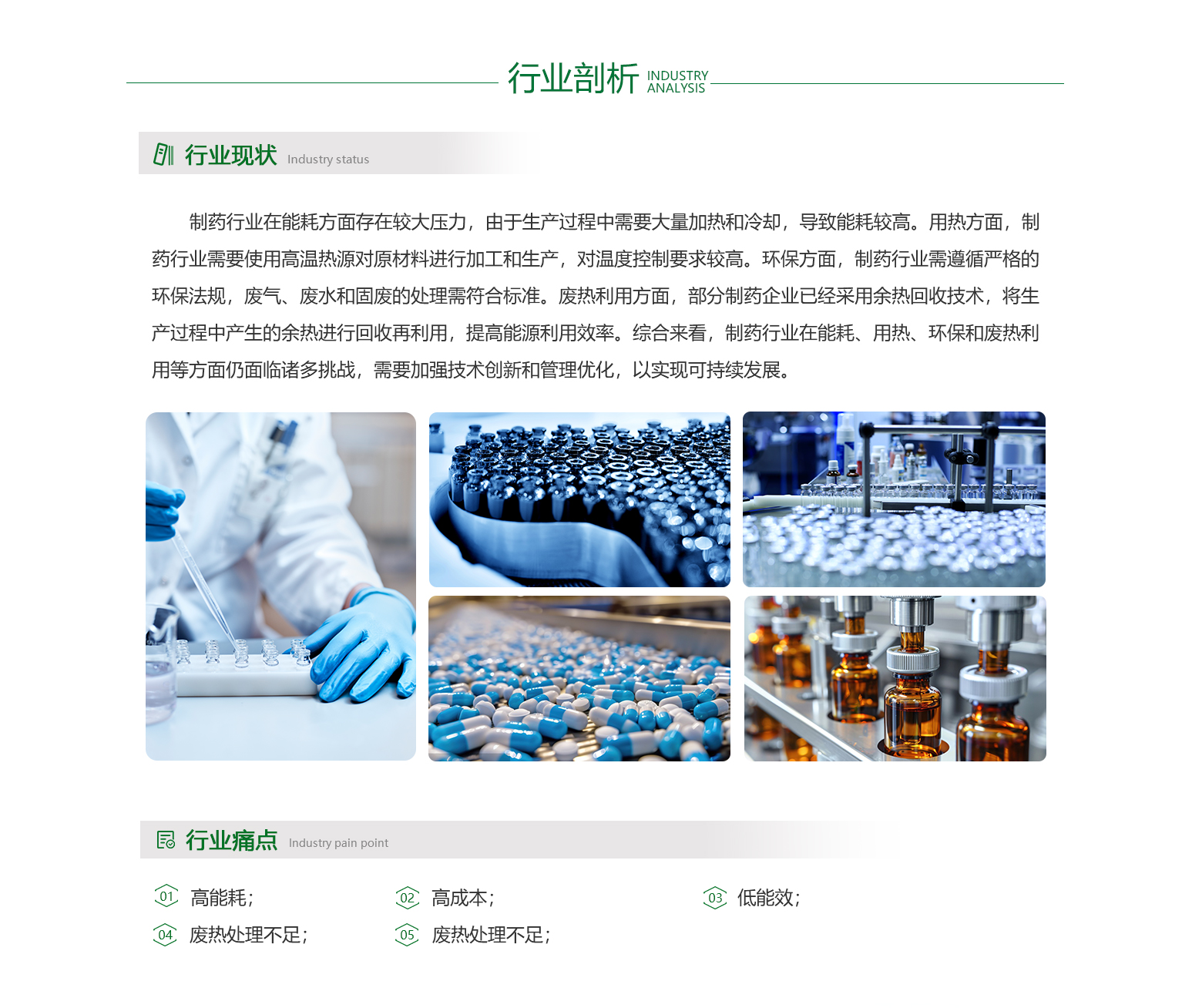 - 制药行业在能耗、能源成本、能效、废热处理和设备等方面面临诸多挑战。高能耗和能源成本是制药企业持续发展的两大难题,不仅增加了生产成本,还对环境造成了压力。此外,低能效也是制药行业普遍存在的问题,这主要与设备老旧、技术落后有关。废热处理和利用同样是一个亟待解决的问题。许多制药企业缺乏有效的废热回收技术,导致能源浪费严重。最后,设备维护也是一大痛点。制药设备种类繁多,维护难度大,需要专业的技术人员进行定期检查和维修,以确保设备的稳定运行。