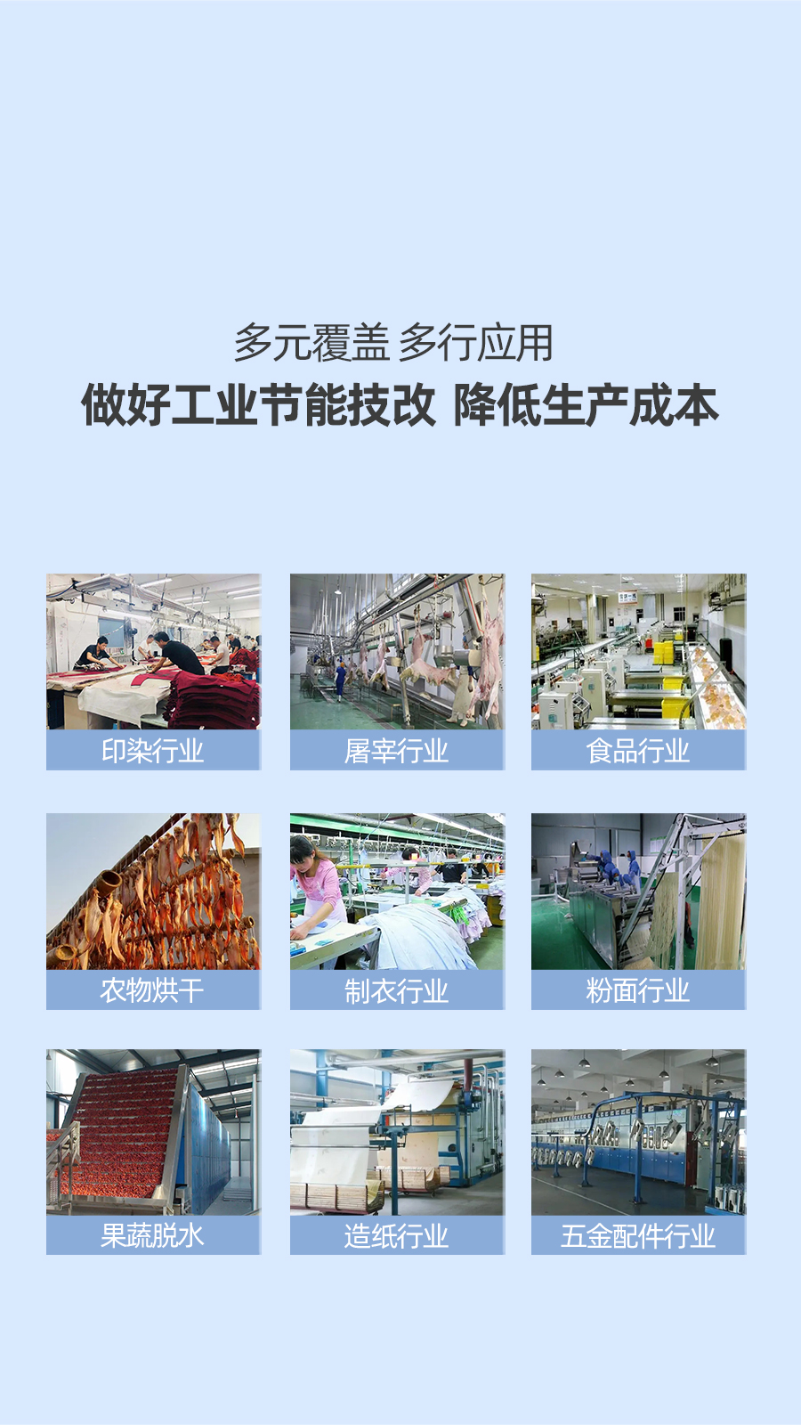 白酒行业 洗涤行业 注塑行业 食品行业 面条行业 饮料行业 农产烘干 屠宰行业 印染行业 五金行业 建材行业 啤酒行业 制药行业