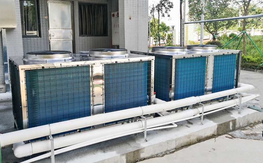 高中空气能热泵热水案例,广东省佛山市顺德一中(高中部)空气能热水项目采用12台碧涞RB-51K(15匹)、18台碧涞RB-43K(12匹)空气源热泵热水机,顺德一中(高中部)宿舍热水的需求,机组运行至今安全稳定、节能低耗,得到老师与学生的一致赞许。