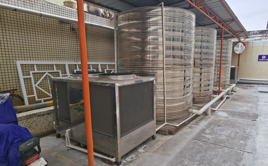 广东南沙大岗中学空气能热水工程案例采用碧涞RB-36K(10匹)空气源热泵热水机多台,满足该学校每天的热水需求,目前运行效果好,受到学校管理方与学生的一致好评和赞誉。