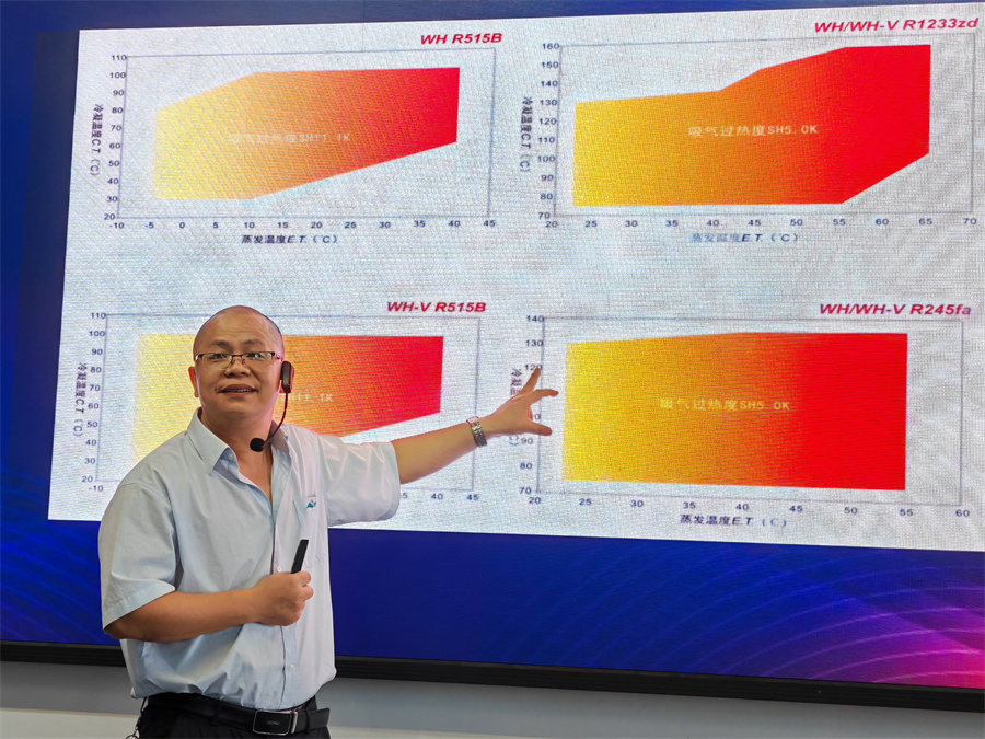 黄志强工程师分享了干衣机技术优势。节能方面,采用先进热泵循环系统,能耗对比传统燃气锅炉节省约40%。
