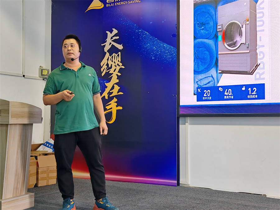 商学院培训班开班伊始,巫宗进董事长发表了开幕致辞,他不仅对参与者的到来表示欢迎,还分享了热泵型干衣机在市场前景和战略规划。