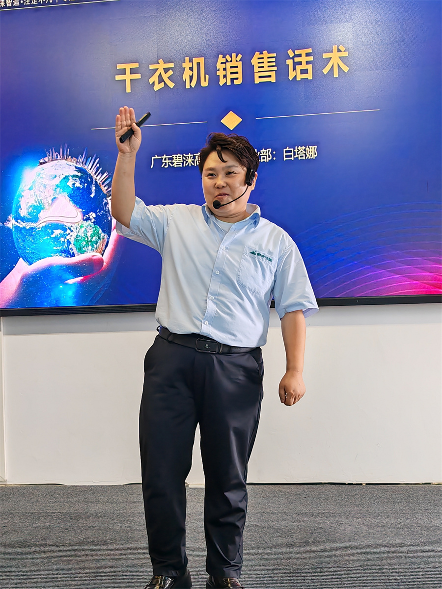 白塔娜经理,凭借其深厚的专业知识与独到的见解,为学员们呈上了一场独具特色的演讲。她深度剖析了嵌入式热泵型烘干一体机的节能环保性能,同时结合各大企业的实际应用实例,使我们对这款产品拥有了更为全面的认知。